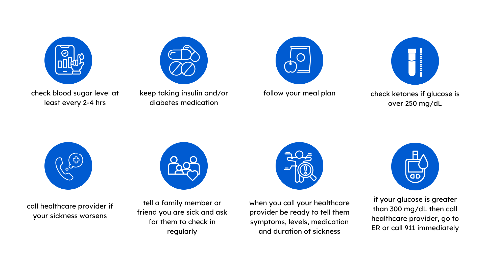 + Your blood sugar and urine ketone levels during the time you have been sick.