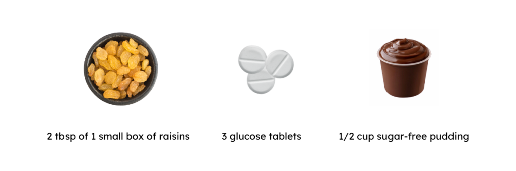 Note: If your glucose returns to normal, but it will be more than 30 minutes until your next meal, eat a snack that contains protein and carbohydrates (such as half a sandwich).