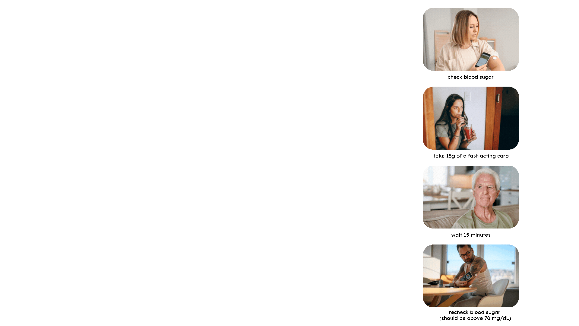 - 3. Recheck glucose. It should be above 70 mg/dL