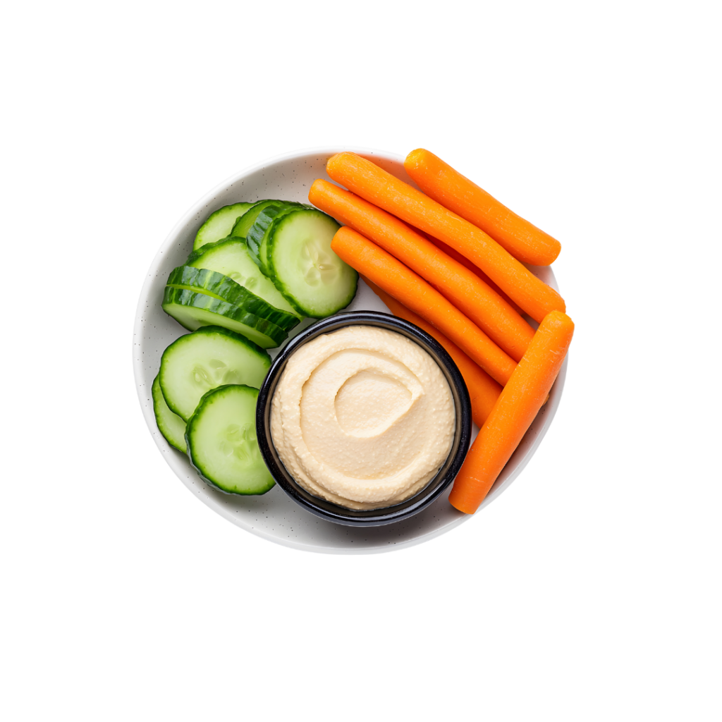 1/3 cup of hummus with carrot sticks or cucumbers