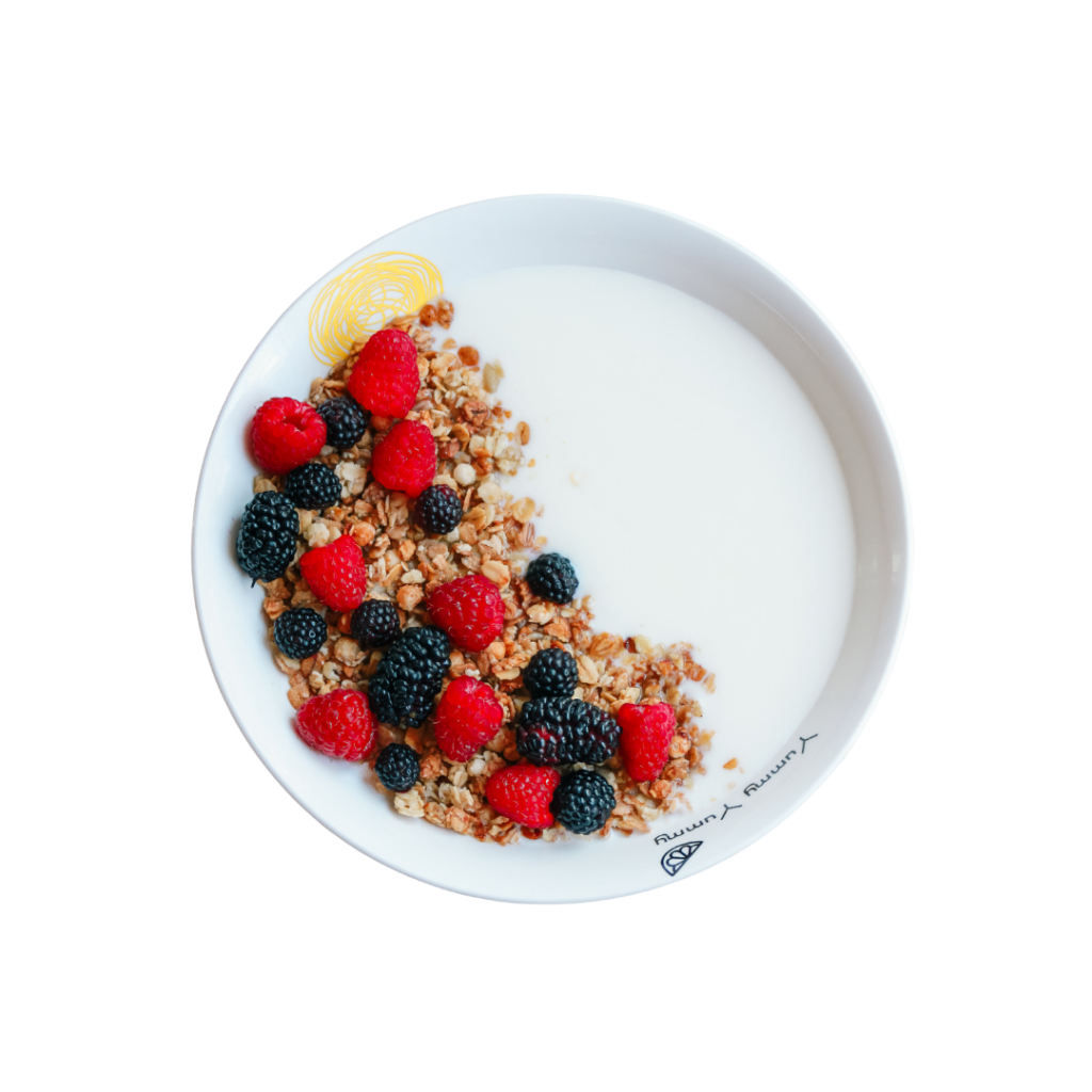 6 oz. plain yogurt with 1/4 cup low-fat granola or 1/2 cup of fruit