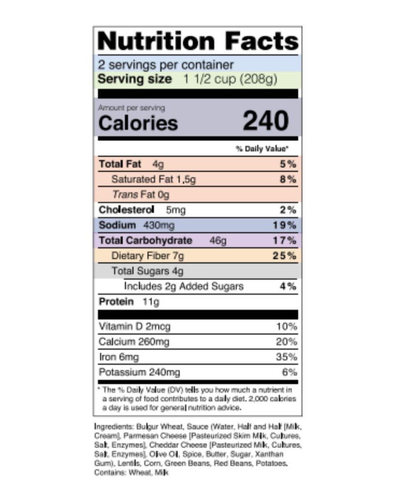 Ingredients: This list shows you the ingredient with the greatest contribution to the product in weight. The less ingredients, the less processed it is. A long list of ingredients will tell you that it is a highly processed food.